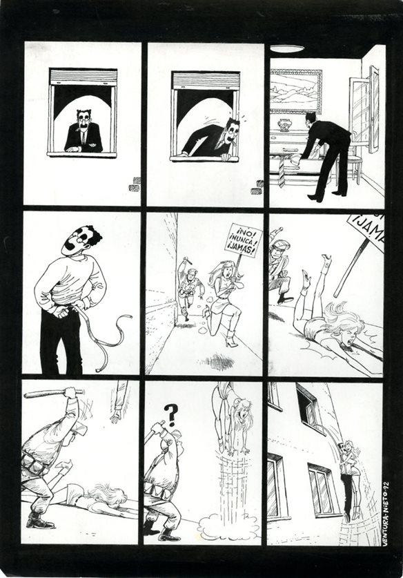 Miguel Angel Nieto (1947 - 1995) y Enrique Ventura (1946). Dúo de historietistas españoles compuesto por el guionista Miguel Ángel Nieto y el dibujante Enrique Ventura, tras el fallecimiento del primero, Ventura continuó trabajando en solitario. Primos y residentes en Madrid, uña y carne tanto en lo personal como en lo profesional.​ Publicaron en 1971 una historieta titulada Sam y la Morsa en la revista infantil Molinete, y al año siguiente estaban trabajando ya para la revista Trinca. Instalados en Barcelona, son contratados en 1974 por la revista "satírica y neurasténica" por excelencia, El Papus, donde eran un rara avis, en el sentido de que lo suyo era el humor desmadrado y socarrón pero tierno a la vez, cuyo dibujo tenía una base técnica realmente impresionante. Posteriormente recalan en El Jueves, donde publicarán su longeva serie Grouñidos en el Desierto.