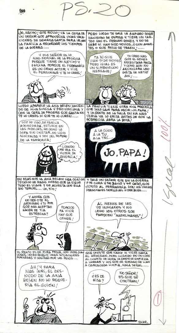 Oscar Nebreda "Oscar" (Barcelona 1945). Dibujante, humorista y editor español. Tras publicar en 1970 la serie Tromp en el tebeo en lengua catalana L'Infantil, formo parte de el equipo fundacional, aún en la dictadura, de revistas satíricas como Barrabás y El Papus, sufriendo varios juicios y amenazas. Tras el atentado a El Papus de 1977, en el contexto de la Transición, fundó El Jueves, de la que es editor y dibujante. Sus personajes más conocidos son El Profesor Cojonciano y Jordi Culé.