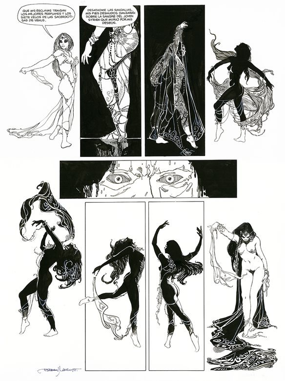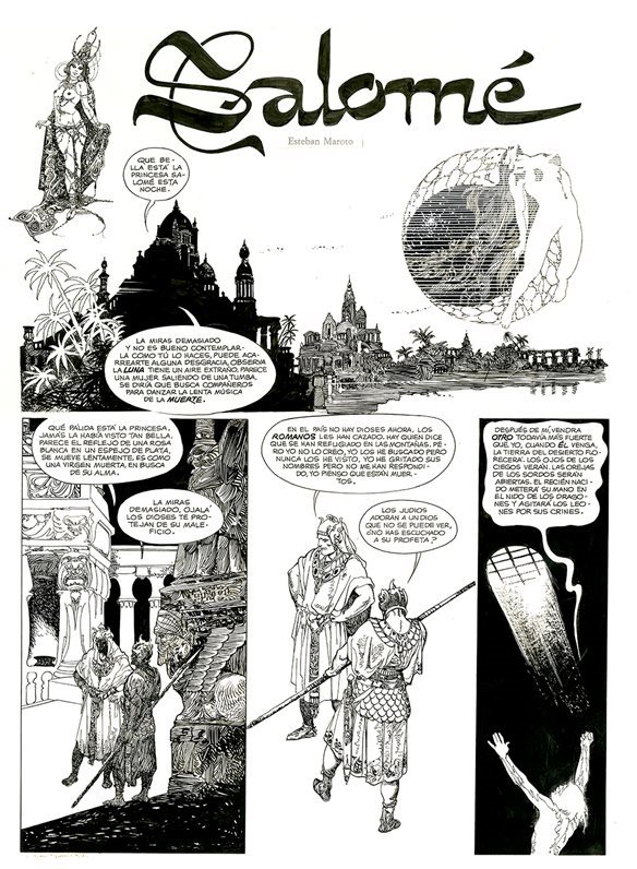 Edición limitada de 100 unidades numeradas, con un dibujo original único de Esteban Maroto, de las 8 láminas, en formato 33 x 48cm, de su historieta Salomé, escaneadas en alta resolución directamente de los originales.