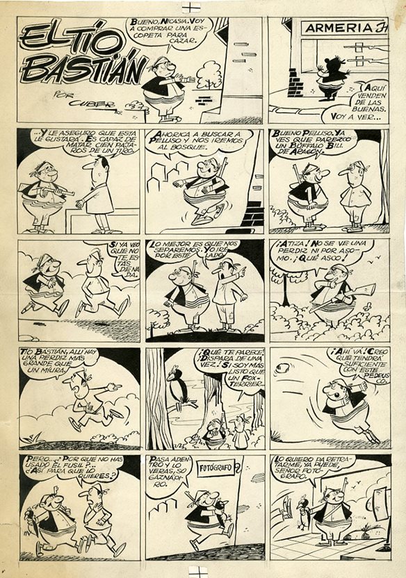 José Cubero Valero (Barcelona 1935-2013). Prolífico dibujante, historietista y humorista gráfico catalán, principalmente conocido por su asiduo trabajo en la revista TBO. Colaboró en las revistas como La Risa, Yumbo, Florita o Gaceta Junior, así como en publicaciones inglesas y alemanas. En 1979 produjo dos títulos que adaptaban las aventuras de Don Quijote de la Mancha al cómic en tono de humor. En 1981 trabajó para la animación japonesa y, hacia 1987, se incorporó al sello Editors.