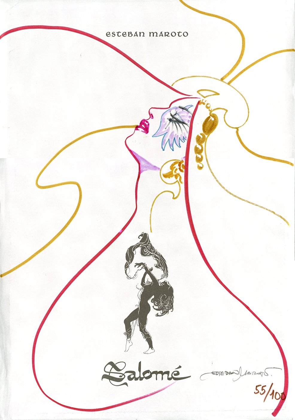 Edición limitada de 100 unidades numeradas, con un dibujo original único de Esteban Maroto, de las 8 láminas, en formato 33 x 48cm, de su historieta Salomé, escaneadas en alta resolución directamente de los originales.